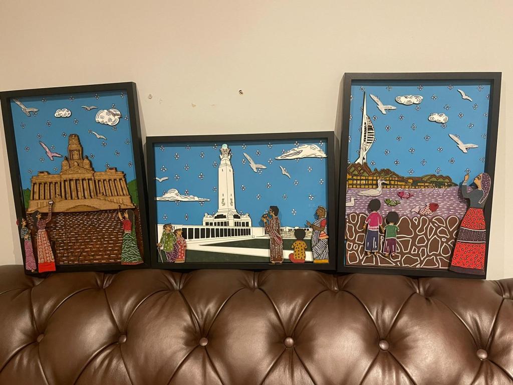Sarika says: This project has been an interesting learning process for me. I learnt how two different art forms can be combined to create something beautiful and different: in this example, the combination of woodwork using the most modern equipment and the ancient folk art form of Pattachitra to create stories of Portsmouth.