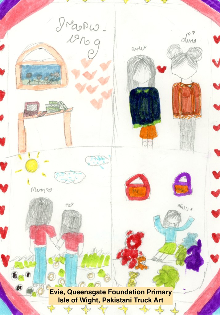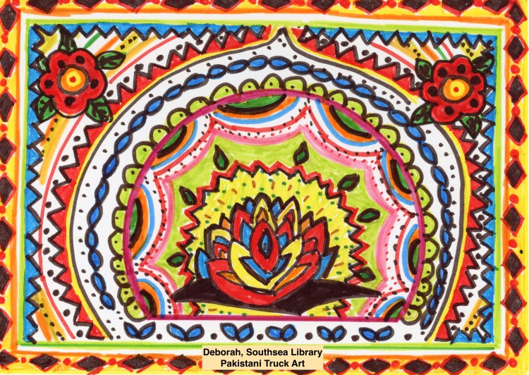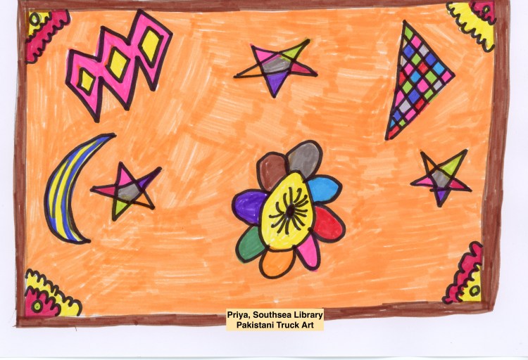 Through Bridges not Borders, we built bridges locally, nationally and internationally through South Asian art and literature. Between July 2023 and September 2024 we ran art workshops at libraries, schools, art and culture events, and community centres across the Solent region. We ran art workshops in three South Asian artforms: Phool Patti (Pakistani Truck Art), Madhubani and Pattachitra. Young and old attended our workshops and produced hundreds of pieces.
